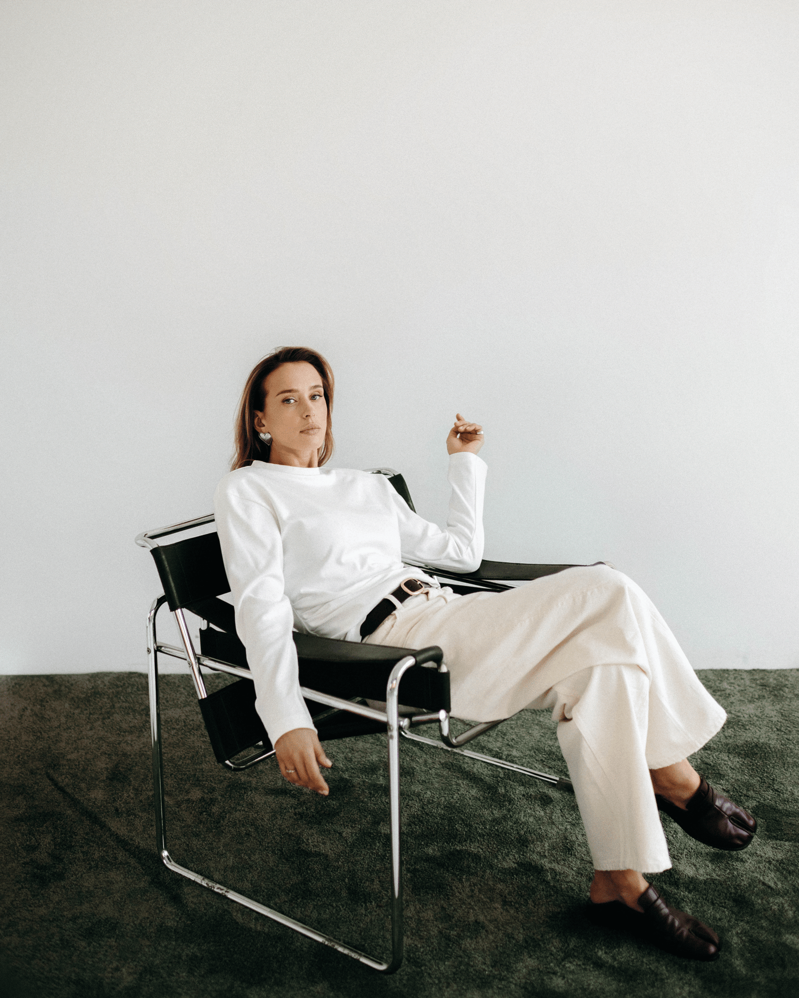 Prigludusi, įprasto ilgio palaidinė ilgomis rankovėmis. Pečiuose yra petukai, o priekinės klostės suteikia tekstūros ir apimties. Pagaminta iš aukštos kokybės bambuko medvilnės.