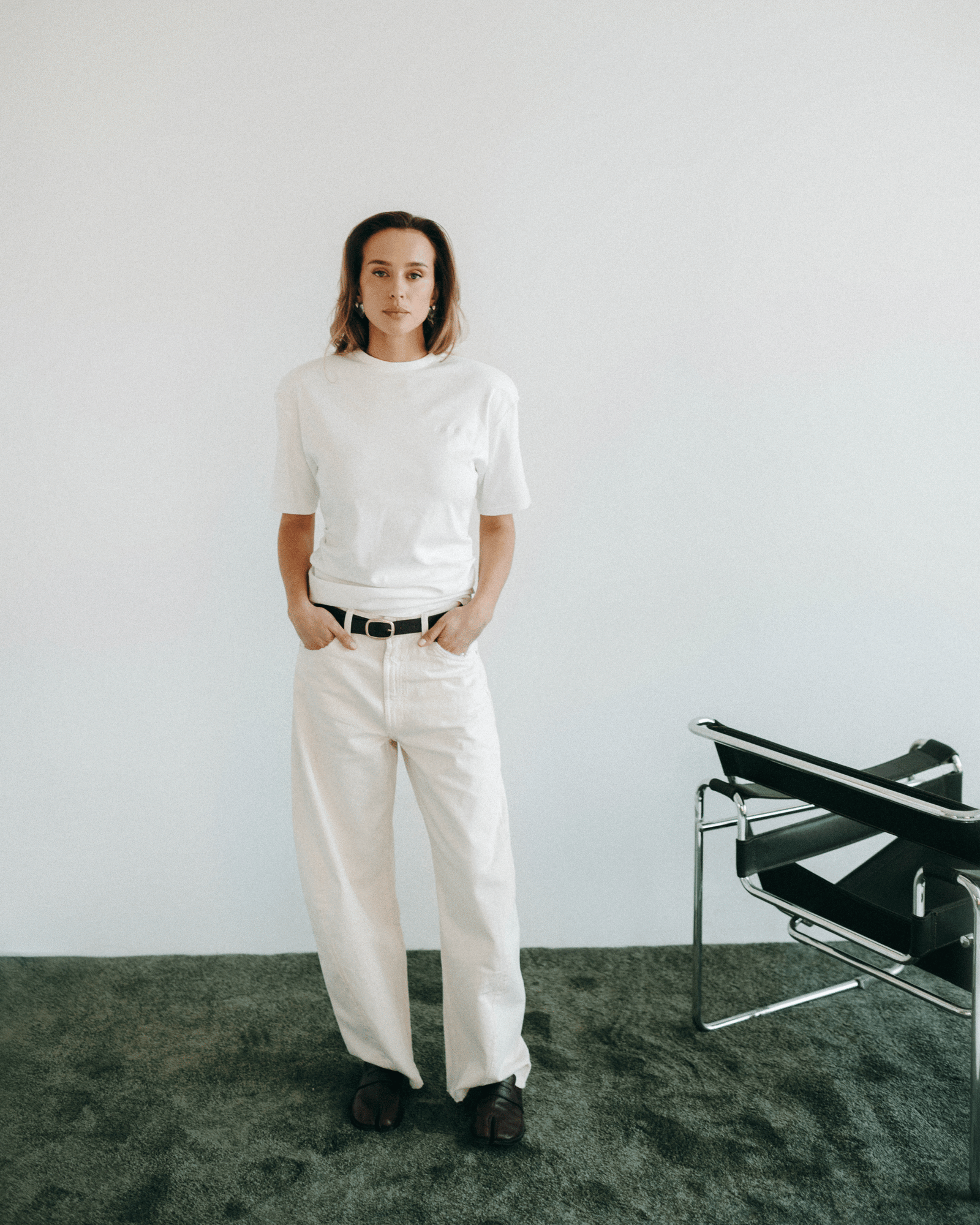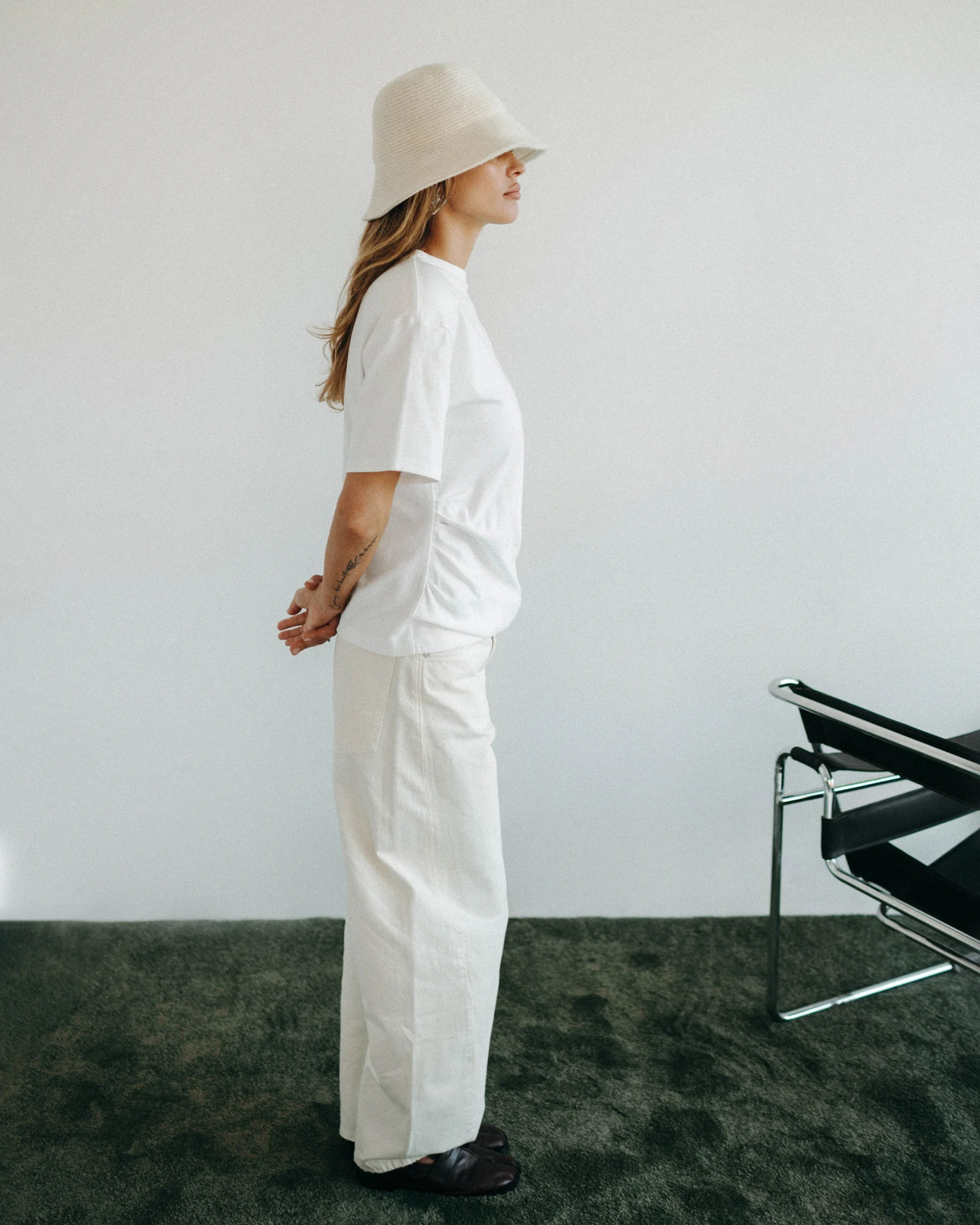 Prigludusi, įprasto ilgio palaidinė. Pečiuose yra petukai, o  priekinės klostės suteikia  tekstūros ir apimties. Pagaminta iš aukštos kokybės bambuko medvilnės.